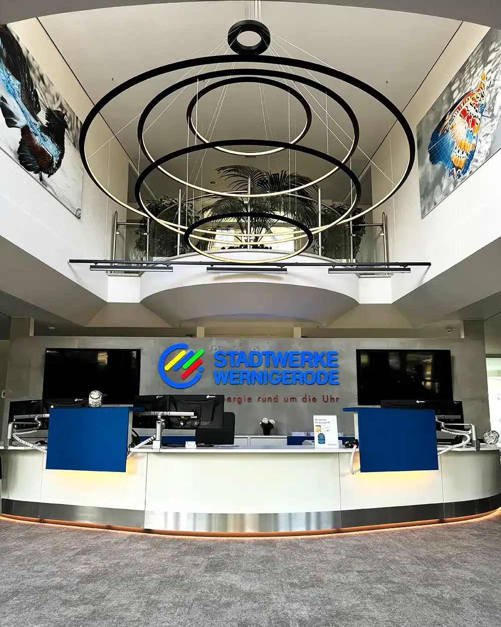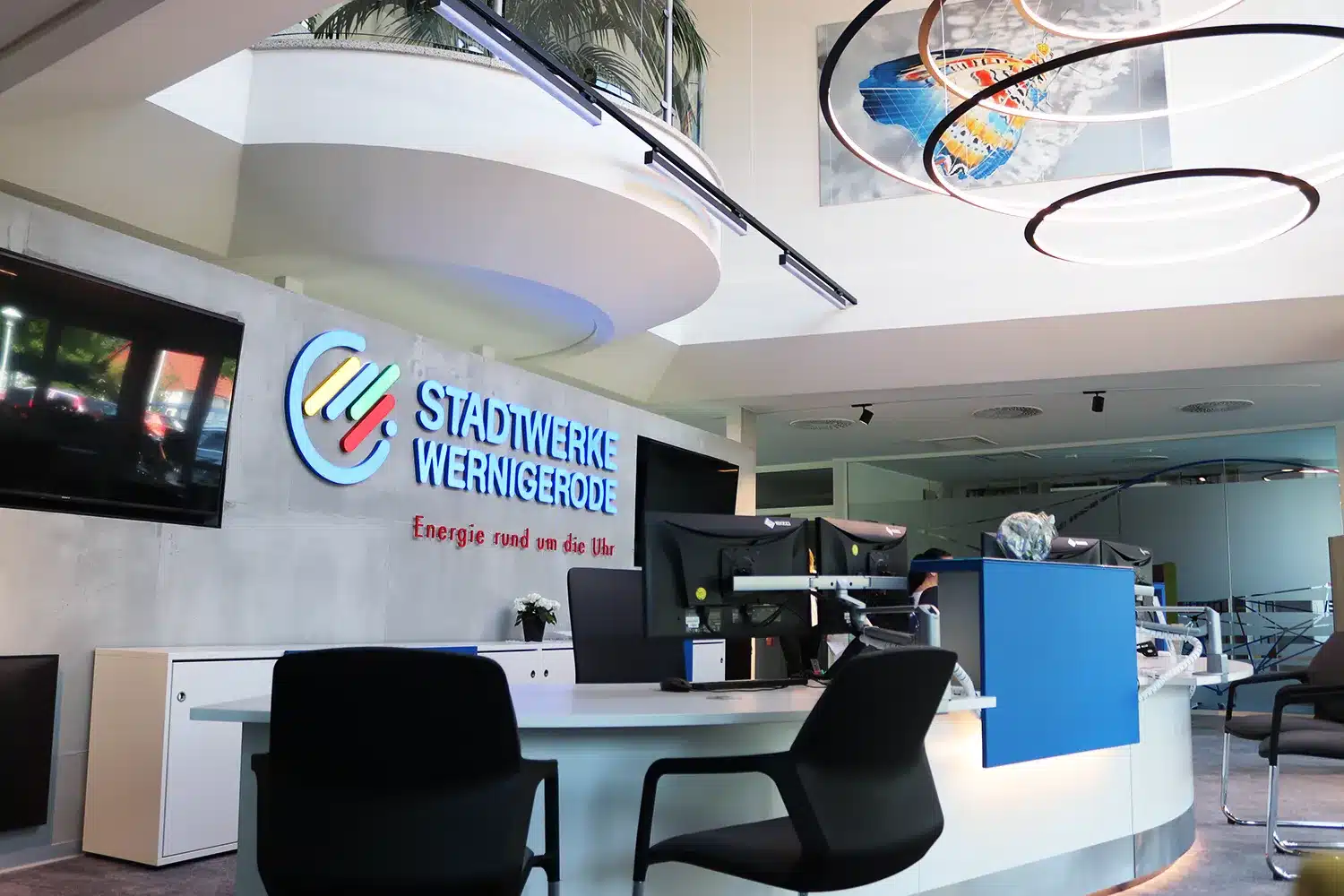 Nach umfassender Modernisierung freuen wir uns, unser neu gestaltetes Kundenzentrum im Hauptgebäude, Am Kupferhammer 38, wieder für den Besucherverkehr zu öffnen. Die Umbauarbeiten, die Anfang Juli begonnen hatten, sind nun erfolgreich abgeschlossen. Ab September stehen unsere Kolleginnen und Kollegen wieder persönlich für Beratung und Service zur Verfügung – in einem modernen, hellen Ambiente, das auf Kundenkomfort und funktionale Beratung ausgerichtet ist.